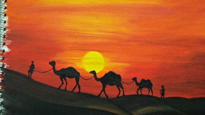 How To Draw Scenery Of Sunset In Desert Step By Step Very Easy Youtube